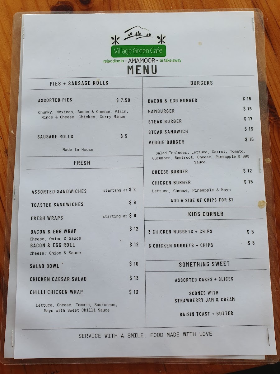 Welcome to Village Green Cafe, a delightful gem located at 3 Busby St, Amamoor, Queensland. This charming café, just 20 minutes from Gympie, offers a menu that's as inviting as its atmosphere.